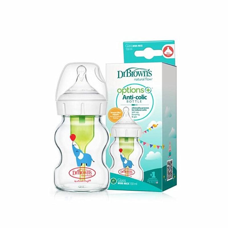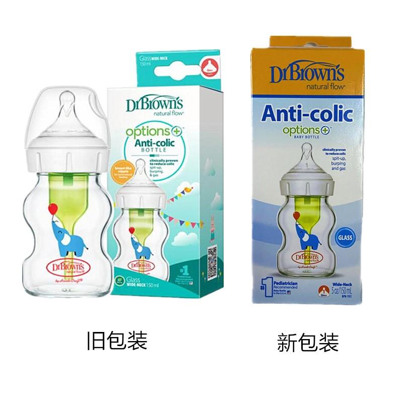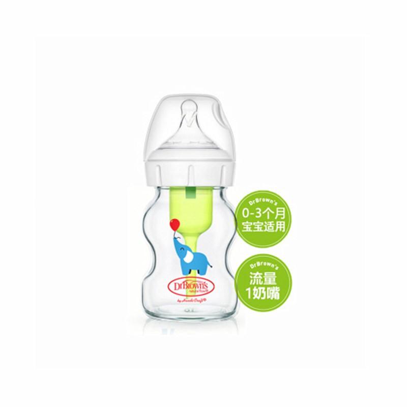 布朗博士 爱宝选PLUS防胀气婴儿奶瓶宽口 大象玻璃奶瓶150ml(自带流量1奶嘴)